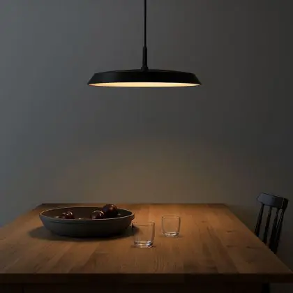 Verleihen Sie Ihrem Zuhause eine moderne Note mit der D’Lite LED Pendant Uxem – einer Pendelleuchte, die modernes Design mit energieeffizienter LED-Technologie vereint. Mit ihrer mattschwarzen Oberfläche und dem minimalistischen Stil fügt sie sich harmonisch in verschiedene Wohnbereiche ein – von modernen Küchen bis hin zu gemütlichen Wohnzimmern. Die integrierte LED sorgt für gleichmäßige Beleuchtung, während die 3-Stufen-Dimmfunktion es ermöglicht, das Licht individuell an Stimmung und Anlass anzupassen.