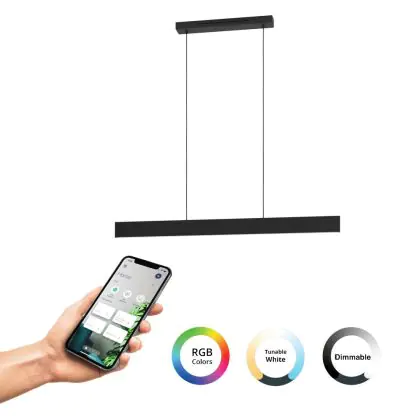 Mit dem Eglo Connect.Z Smart Pendelleuchte Andreas-Z Stahl Schwarz 38W 4600lm - 827-865 Abstimmbares Weiß + RGB | Dimmbar bekommen Sie ein Markenprodukt zum besten Preis! Dank der hohen Qualität können wir Ihnen sogar eine 5 Jahre Beleuchtungdirekt.at All-In-Garantie anbieten. Unsere Lichtexperten klären Sie gerne über weitere Produktvorteile auf.