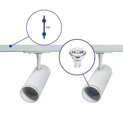 | Herstellername | Complete Straight 1-meter 1-Phase Track Set White incl. 2x Spot fixture + GU10 2700K 3W Dim – 1 Mete | |