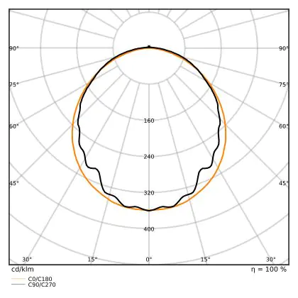 Diese LED-Deckenleuchte punktet mit einer Leuchtkraft von 2.400 lm und strahlt somit einiges an Licht aus. Die ebenfalls hohe Lichtausbeute von 135 lm/W zeugt von einer guten Effizienz. Wenn Sie die Stärke dieses Lichts mit dem Ihrer konventionellen Lichtlösung vergleichen möchten, empfehlen wir Ihnen einen Blick in unsere praktische Tabelle Lumen in Watt umrechnen.