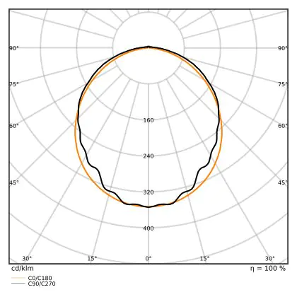Diese LED-Deckenleuchte punktet mit einer Leuchtkraft von 11.000 lm und strahlt somit einiges an Licht aus. Die ebenfalls hohe Lichtausbeute von 135 lm/W zeugt von einer guten Effizienz. Wenn Sie die Stärke dieses Lichts mit dem Ihrer konventionellen Lichtlösung vergleichen möchten, empfehlen wir Ihnen einen Blick in unsere praktische Tabelle Lumen in Watt umrechnen.