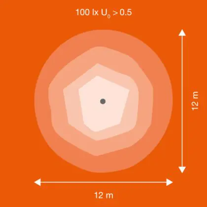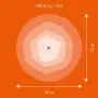 Beispiel: Wird eine Lampe mit einem Abstrahlwinkel von 60 Grad an der Decke (2,5 m Höhe) angebracht, erzeugt sie einen Lichtkegel von 2,9 Metern Durchmesser. Hat die Lampe hingegen einen Abstrahlwinkel von 120 Grad, beträgt der Lichtkegel 8,7 Meter im Durchmesser.  |