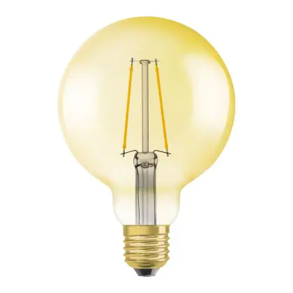 Die Osram Vintage 1906 LED E27 Globe Fadenlampe Gold 95mm 4W 420lm - 824 Extra Warmweiß | Dimmbar - Ersatz für 40W ist eine effiziente E27 LED-Lampe mit Retrodesign und der perfekte Ersatz für Ihre konventionellen 40W Lampen mit E27. Zudem strahlt sie Licht in der Farbtemperatur 2400K - Extra Warmweiß aus und punktet durch eine lange Lebensdauer.
