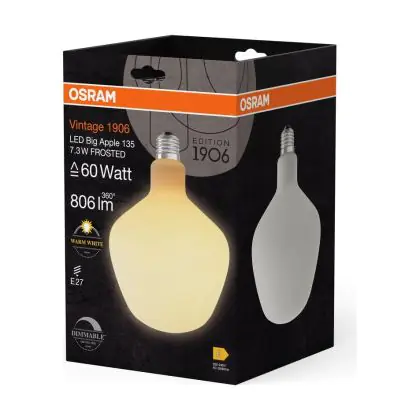 Die Osram Vintage 1906 LED E27 Special Fadenlampe Matt 7.3W 806lm - 827 Extra Warmweiß | Dimmbar - Ersatz Für 60W ist eine effiziente E27 LED-Lampe mit Retrodesign und der perfekte Ersatz für Ihre konventionellen 60W Lampen mit E27. Zudem strahlt sie Licht in der Farbtemperatur 2700K - Extra Warmweiß aus und punktet durch eine lange Lebensdauer.