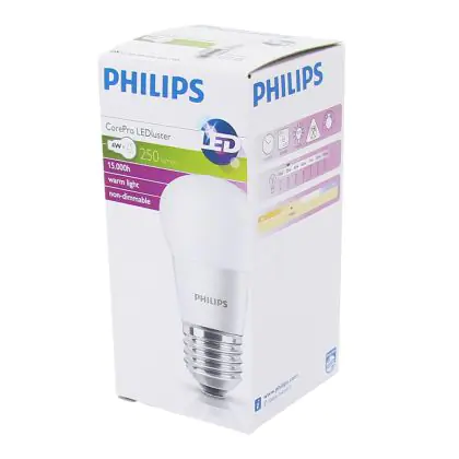 Die Philips Corepro LED Lustre E27 Kugel Matt 2.8W 250lm - 827 Extra Warmweiß | Ersatz für 25W ist eine effiziente E14 LED-Lampe und der perfekte Ersatz für Ihre konventionellen 25W Lampen mit E14-Sockel. Zudem strahlt sie Licht in der Farbtemperatur 2700K - Extra Warmweiß aus und punktet durch eine lange Lebensdauer.