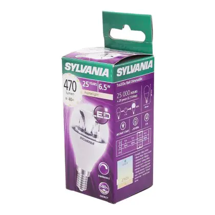 Die Sylvania ToLEDo Ball E14 Klar zeichnet sich durch einen geringen Stromverbrauch von nur 6,5 Watt aus. Dies ermöglicht Ihnen erhebliche Energieeinsparungen. Die LED hat einen E14-Sockel, sowie eine P45-Ballform, und spendet warmes Licht mit einer Farbtemperatur von 2.700 Kelvin.